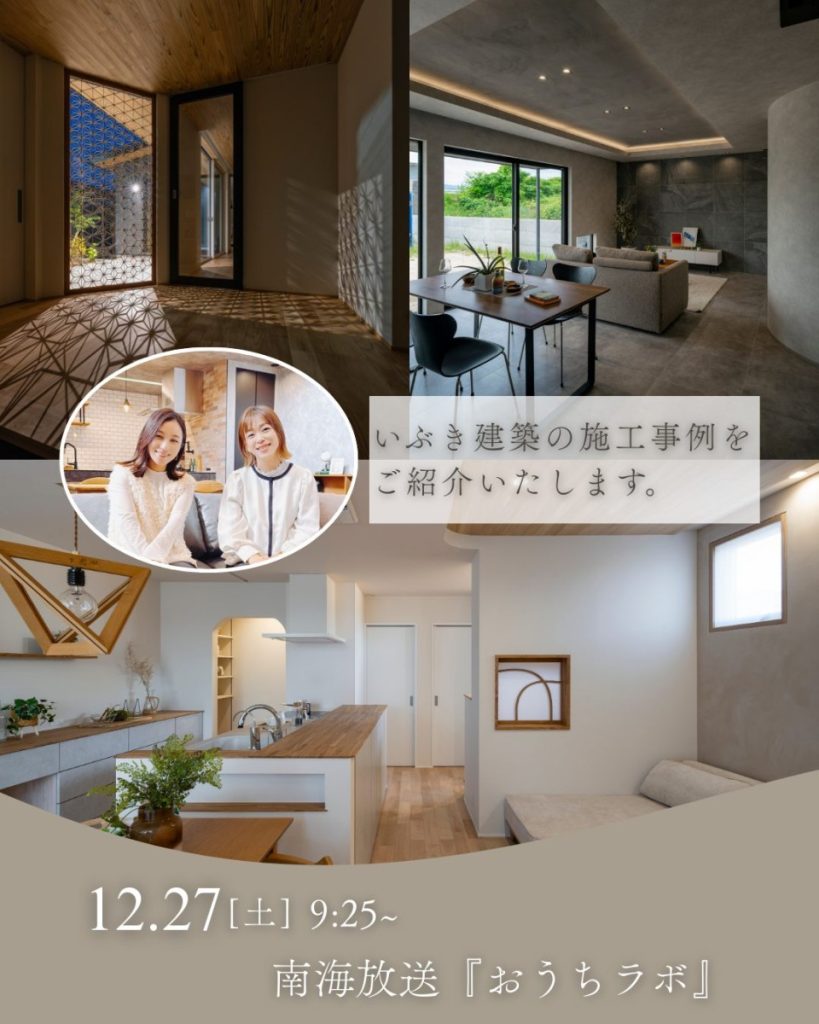 また今週の12/27(土)9:25~南海放送「おうちラボ」にて、いぶき建築の施工事例のご紹介と会社のお話しを宮嶋アナウンサーとさせて頂きます😊