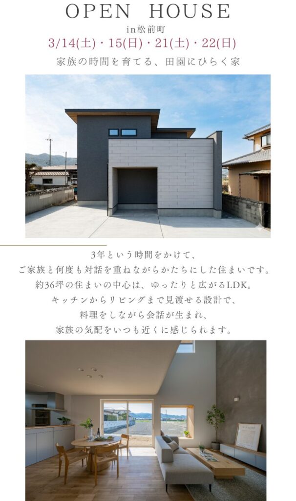 イベント・ニュースEVENT & NEWS ホームイベント・ニュース【終了】家族の時間を育てる、田園にひらく家 【終了】家族の時間を育てる、田園にひらく家 満員御礼 ご予約は終了致しました。 posted at 2026.02.04 記事一覧へ戻る INSTAGRAM インスタグラム 保存版✨参考にしたい玄関特集。 #玄関 『 あらゆる高度な技術 機能美 デザイン 』 礎には高 参考にしたい! 家族の会話が弾むダイニング集めました。 #ダイニング 『 あらゆる高度な技術 機 静寂と温もりが調和する家。 こだわりが詰まった一邸をルームツアーでご紹介します。 #ルームツアー 暮らしの中に、空と光を包み込む邸宅vol.3 #ルームツアー 『 あらゆる高度な技術 機能美 デ おお知らせです。 3月26日(木) 15:30~16:00時前後に @ouchilabo4ch と 和モダンな洗い出しの土間がオシャレを演出した玄関のある住まい #玄関 『 あらゆる高度な技術 機能 ひとつながりの家 #ルームツアー 『 あらゆる高度な技術 機能美 デザイン 』 基礎には高い技術 【完成見学会開催中】 先日よりお披露目させていただいている 「家族の時間を育てる、田園にひらく家」 昼と夜で、表情が変わるリビング。 間接照明が壁や天井にやさしく広がる、 光まで設計された空間。 # Instagramでフォローする