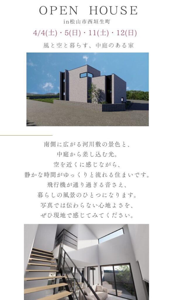 イベント・ニュースEVENT & NEWS ホームイベント・ニュース【4月完成見学会】風と空と暮らす、中庭のある家 【4月完成見学会】風と空と暮らす、中庭のある家 完成見学会予約フォーム お名前必須 お電話番号必須 - - メールアドレス必須 希望日時必須 4月4日(土)11:00〜 4月4日(土)13:00〜 4月4日(土)15:00〜 4月4日(土)17:00〜 4月5日(日)11:00〜 4月5日(日)13:00〜 4月5日(日)15:00〜 4月5日(日)17:00〜 4月11日(土)11:00〜 4月11日(土)13:00〜 4月11日(土)15:00〜 4月11日(土)17:00〜 4月12日(日)11:00〜 4月12日(日)13:00〜 4月12日(日)15:00〜 4月12日(日)17:00〜 ご来場人数必須 大人 - 1名 2名 3名 4名 5名 子供 - 1名 2名 3名 4名 5名 ご希望の連絡方法 メール お電話 備考欄 個人情報保護方針への同意必須 同意する 「プライバシーポリシー」をご確認の上、同意するにチェックを入れて先にお進みください。 このサイトはreCAPTCHAによって保護されており、Googleのプライバシーポリシーと利用規約が適用されます。 posted at 2026.02.04 記事一覧へ戻る INSTAGRAM インスタグラム お気に入りが見つかる、洗面台特集。 #洗面台 『 あらゆる高度な技術 機能美 デザイン 』 吹き抜けの天井とシックなデザインで、まるでカフェのような空間。 家族みんなが自然と集まりたくなるLD 空が見える三角屋根のお家 #ルームツアー 『 あらゆる高度な技術 機能美 デザイン 』 基礎には 趣味を楽しむ暮らしが出来るお家。 #ルームツアー 『 あらゆる高度な技術 機能美 デザイン 』 趣味時間を楽しむ暮らし #ルームツアー 『 あらゆる高度な技術 機能美 デザイン 』 礎には高い やわらかな素材と光のなかで、 何気ない日常がすこしだけ、丁寧になる。 整えすぎない、整った空間。 家づくりの参考に。 街並みに映える美しい外観特集! #外観 『 あらゆる高度な技術 機能美 デザ 玄関特集。 デザインも使いやすさも大切にした心地良い玄関を集めました。 #玄関 『 あらゆる高度 自然光が差し込むナチュラルテイストなダイニングキッチン #ダイニング 『 あらゆる高度な技 Instagramでフォローする